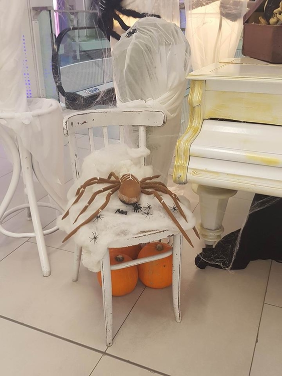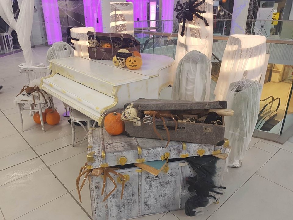 На партера до пианото имаме ужасяващо-прекрасен кът за Хелоуин, където от 11:00 до 19:00 часа професинален гримьор ще превръща всички желаещи в симпатични или не толкова симпатични страшилища. Може да звучи като оксиморон, но ще бъде забавно – обещаваме! И за да е завършен ефектът – може да си изберете и костюми.